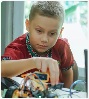 Our Coding & Robotics program strengthens computational thinking and problem-solving skills through hands-on exploration of technology and innovation. By combining creativity with coding and robotics, students gain essential digital literacy while preparing for a future shaped by science, logic, and global vision.